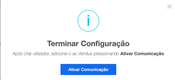 Voltando ao Vendus, verá o painel para Ativar a Comunicação, pode então clicar.