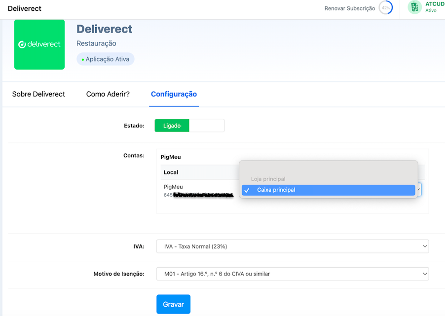Na aplicação da Deliverect, clique em Ver Mais e depois em Configuração. Em seguida, seleccione o ponto de venda pretendido, IVA e Motivo de Isenção - se não for isento, pode colocar qualquer uma das taxas disponíveis. No momento de realizar as vendas, o Vendus considerará as taxas de IVA que configurou para cada um dos seus produtos.