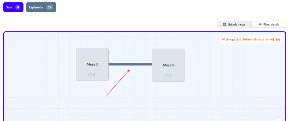 A opção Adicionar Partição permite inserir um elo de ligação entre mesas por exemplo.