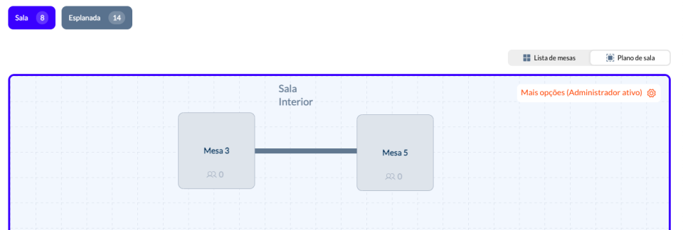 Para aceder à criação do layout, no POS, clique em Plano de Sala e depois em Mais Opções.